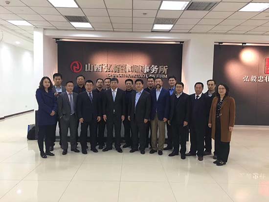 五、2017年11月9日 ,青岛市律师协会奖惩委员会调查机构一行十二位委员由纪斌副会长带队,到山西省律师协会考察学习,山西省律师协会副会长奖惩委员会主任裴正、秘书长牛振宇、副秘书长余浩等接行了考察团一行。双方就投诉接访人员培养与设置、立案、调查、移交惩戒、纪律处分的适用、复核、执行以及制度规范等进行了深入探讨。